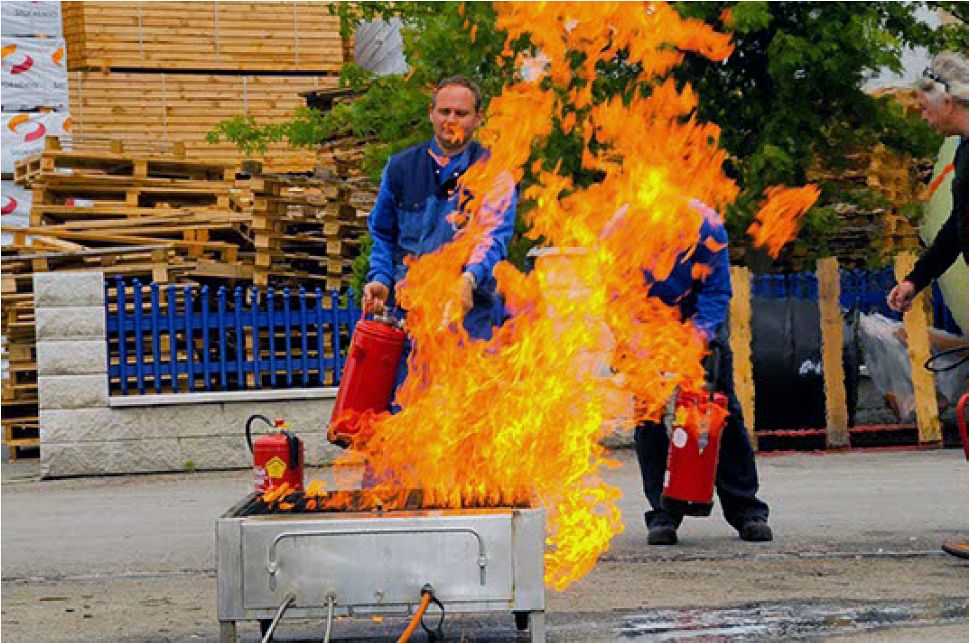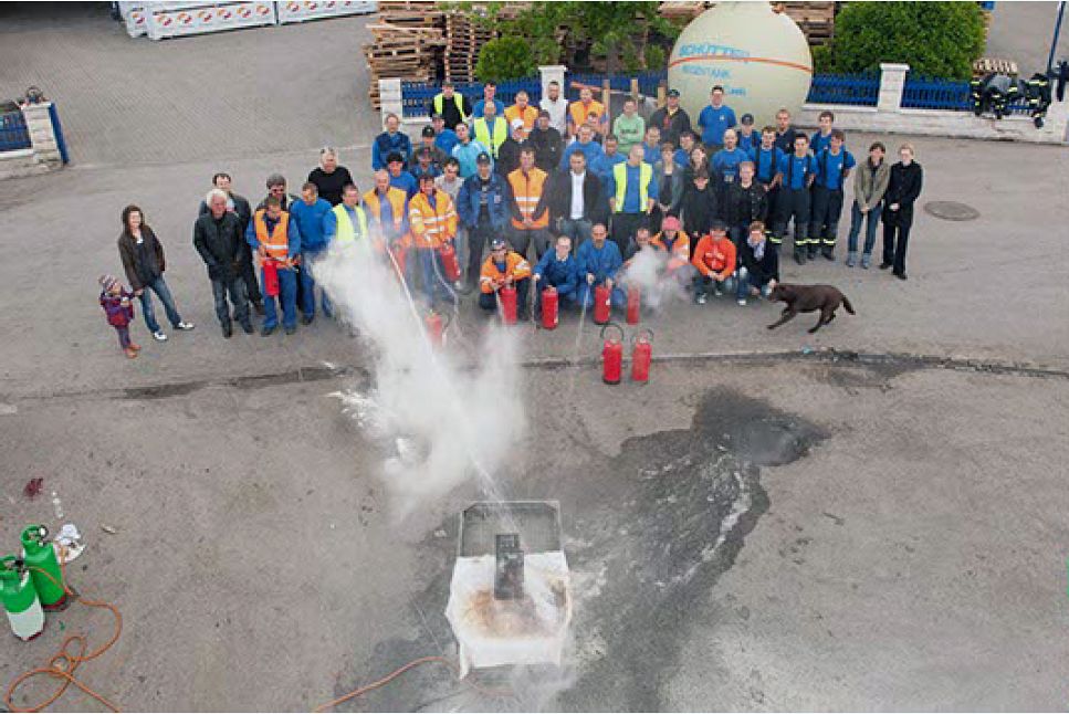 Unterweisung zur Bekämpfung von Entstehungsbränden mit Mitteln der ersten und erweiterten Löschhilfe.